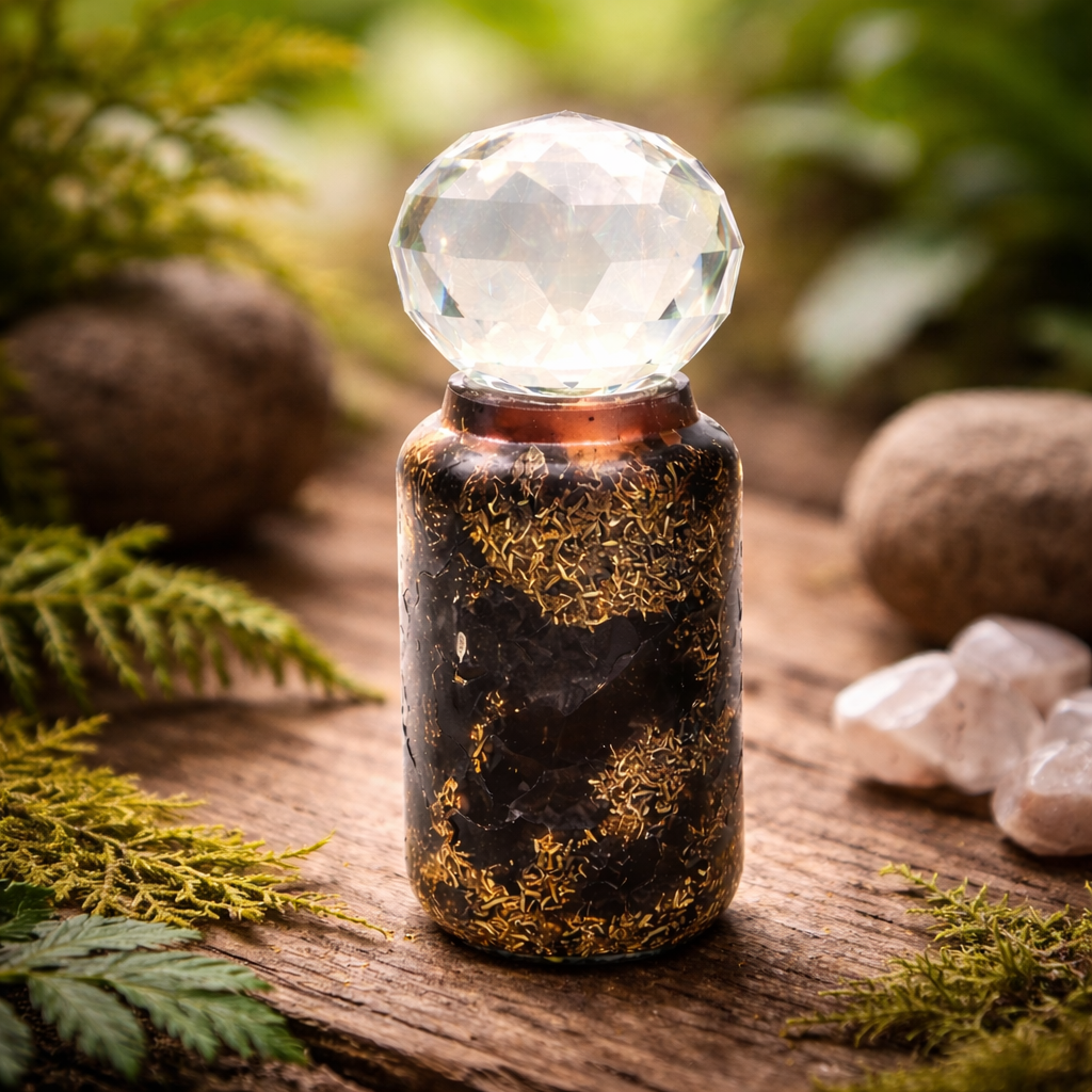 Chez SpirituellementBien, nous sélectionnons des outils spirituels et énergétiques alliant sens, qualité et intention. Ce canon énergétique Protection est conçu autour d’un puissant mélange de pierres naturelles soigneusement sélectionnées pour renforcer la protection, neutraliser les influences indésirables (ondes, pensées négatives, énergies stagnantes) et soutenir un sentiment d’ancrage et d’équilibre. Une partie des pierres est orientée vers la neutralisation des ondes diverses (wifi, téléphone, ordinateur, télévision et autres appareils électriques), tandis que l’autre est choisie pour contrer les mauvaises énergies, les formes-pensées, le mauvais œil ou la magie noire. Ce canon est surmonté d’une boule facettée en verre d’environ 7 à 8 cm de diamètre, amplifiant l’énergie et étendant son influence vibratoire.