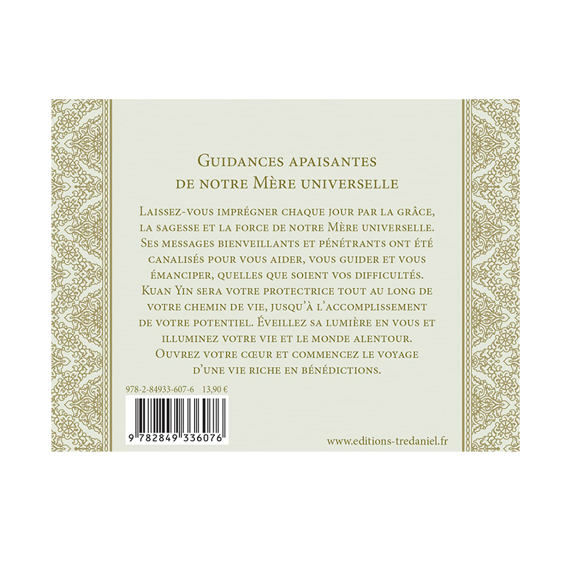 À travers les traditions orientales, Kuan Yin est perçue comme la « Mère de la Compassion », un être éveillé qui répond aux souffrances du monde avec patience, amour et douceur. Travailler avec cet oracle, c’est s’ouvrir à son énergie protectrice et guérisseuse. Ses messages encouragent la bienveillance, la présence consciente, le pardon, la réconciliation intérieure et l’ouverture du cœur. Cet oracle apporte un profond sentiment de sécurité émotionnelle et d’équilibre spirituel.