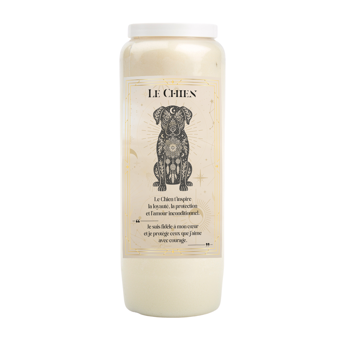 La neuvaine Animal Totem Chien est une bougie spirituelle idéale pour renforcer vos liens, protéger vos proches et avancer avec un cœur fidèle. Elle accompagne vos intentions de confiance, de sécurité et d’amour profond.