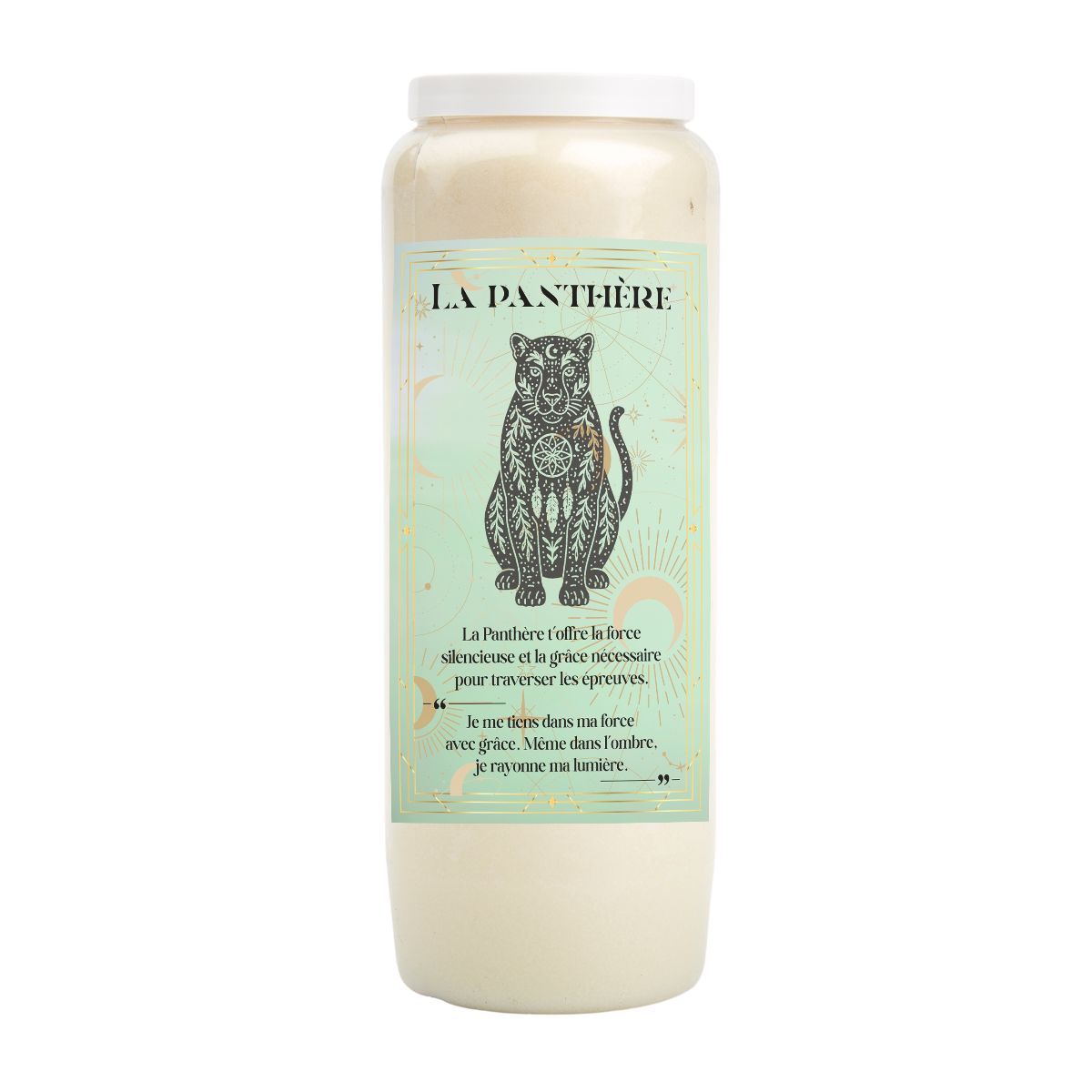 Neuvaine « Panthère » : bougie rituelle 9 jours pour incarner force intérieure, intuition profonde et transformation dans la discrétion. Souveraineté et guidance dans l’ombre.