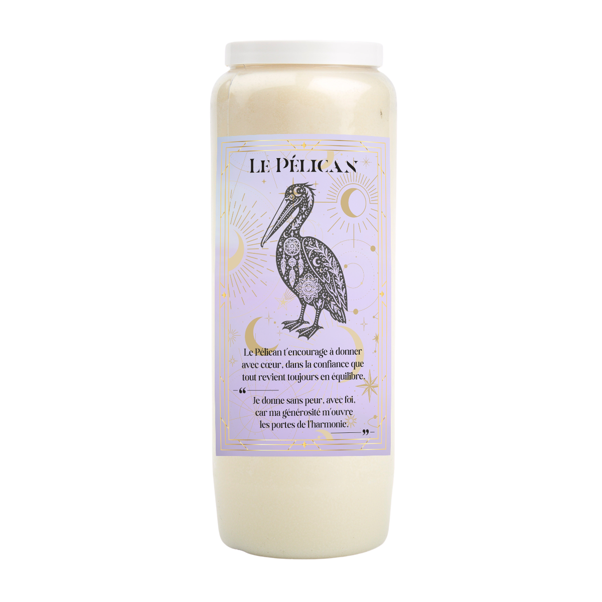 La neuvaine Animal Totem Pélican est une bougie spirituelle idéale pour cultiver la générosité, ouvrir son cœur et faire confiance au flux de la vie. Elle accompagne vos intentions de partage, d’harmonie et d’équilibre intérieur.