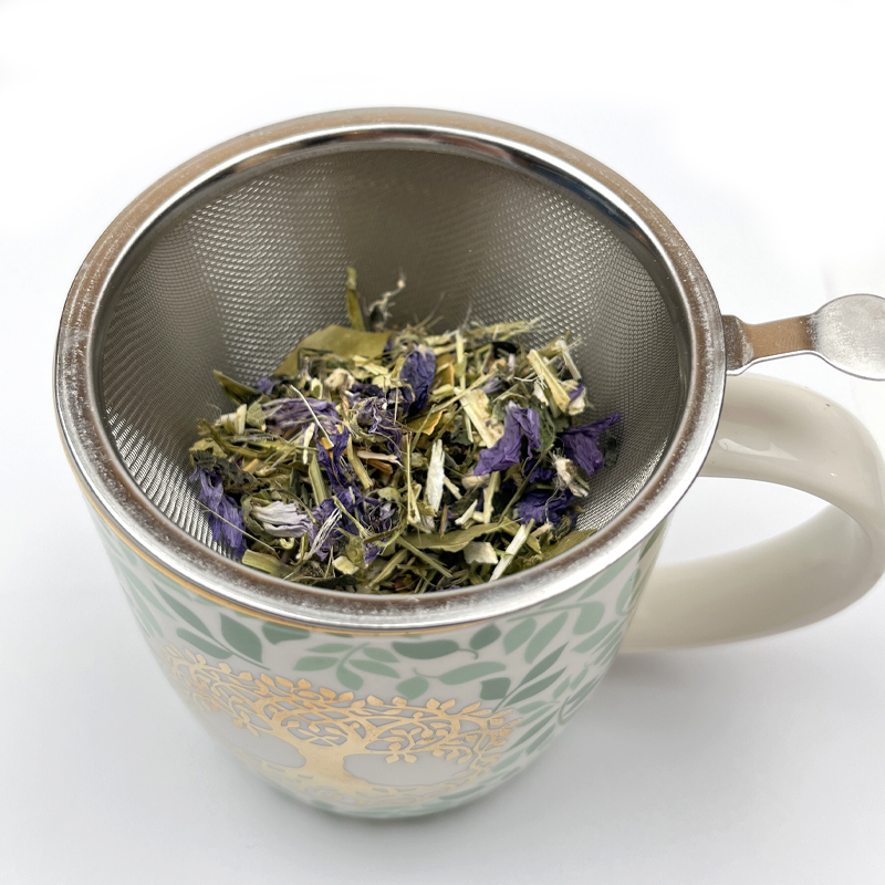 Utilisez 1 à 2 cuillères pour 250 ml d’eau chauffée à 95°, puis laissez infuser entre 7 et 10 minutes. Respirez les arômes avant la première gorgée afin de calmer le mental et d’ouvrir symboliquement le chakra de la gorge. Pour renforcer le rituel, placez une Angélite près de votre tasse, purifiez l’espace avec un encens de purification ou allumez une chandelle spirituelle. Cela intensifie l’ouverture du chakra et nourrit la communication intérieure.